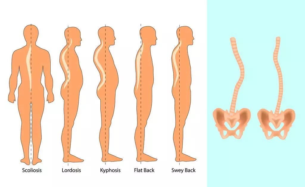 脊柱侧弯会伴随高低肩和骨盆不正,以及双下肢不等长和身高减少,女性骨盆倾斜变形,导致胎儿的形成和成长环境异常。