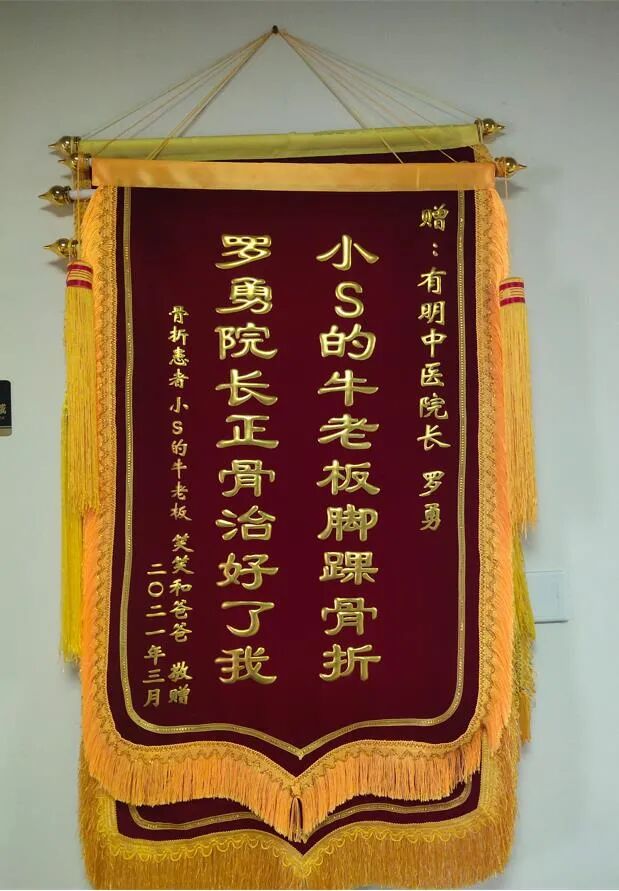 罗院长运用罗氏正骨手法整复治疗,然后再进行石膏固定,经过手法治疗石膏固定后,牛女士去外院复拍X片看骨折对位情况,经拍片检查,骨折对位线良好,维持原固定,然后罗院长交代牛女士定期复查等注意事项。经过四次手法治疗并配合中草药熏洗康复,牛女士左踝恢复良好,功能活动正常。为了感谢罗院长高超医术,牛女士特意送来了锦旗表示感谢,看到牛女士恢复的很好,有明中医全体医护人员也是由衷的欣慰,祝牛女士健康平安!
