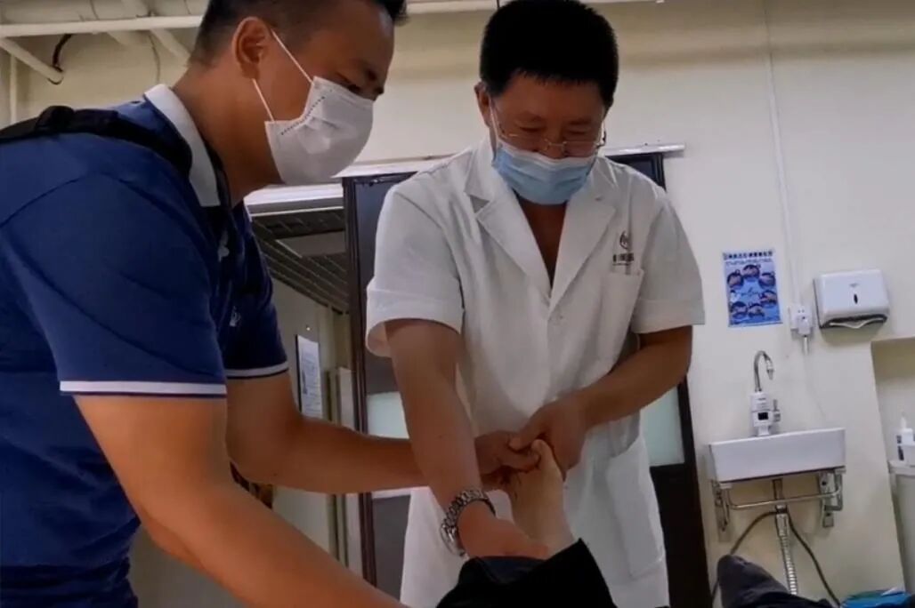 图为罗院长用正骨手法为患者治疗