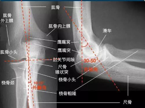 肱骨髁上骨折,主要发生于儿童,成人则少见。肱骨的下端扁而宽,并向前卷曲,与肱骨干长轴形成一个30-50度的角,称为前倾角,骨折移位后,可使前倾角变异为负角,两端变宽,成内、外髁角。由于肱骨下端与骨干的连接处有3个凹,前面为冠突窝及桡骨窝,后面为鹰嘴窝,较深,它们之间仅有一层极薄的软骨板相隔,比较薄弱,肘关节的前后肌肉比较发达,两侧有坚强的韧带保护,从而增加了关节的稳固性,避免了肘关节向两侧脱位而极易发生骨折。