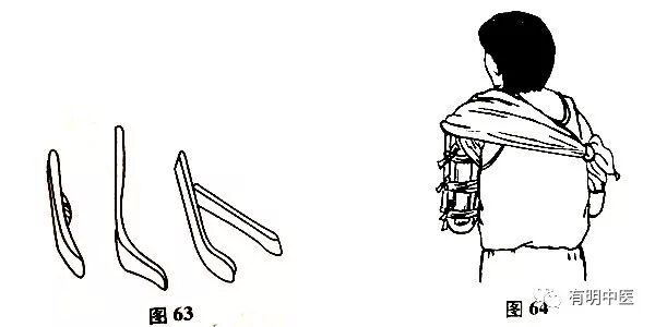骨折对位后,用超关节夹板固定。如淤血肿胀过重,一般1周内复查为宜。固定后,将患肢前臂悬吊在胸前即可(图63、64)。