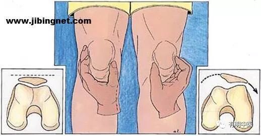 髌骨移位,一般多向外上方脱出,膝关节常处于半屈曲位。行走困难。用手摸时,可触及髌骨移至股骨外髁上方,内侧筋强。关节囊破裂后,关节内有积血。