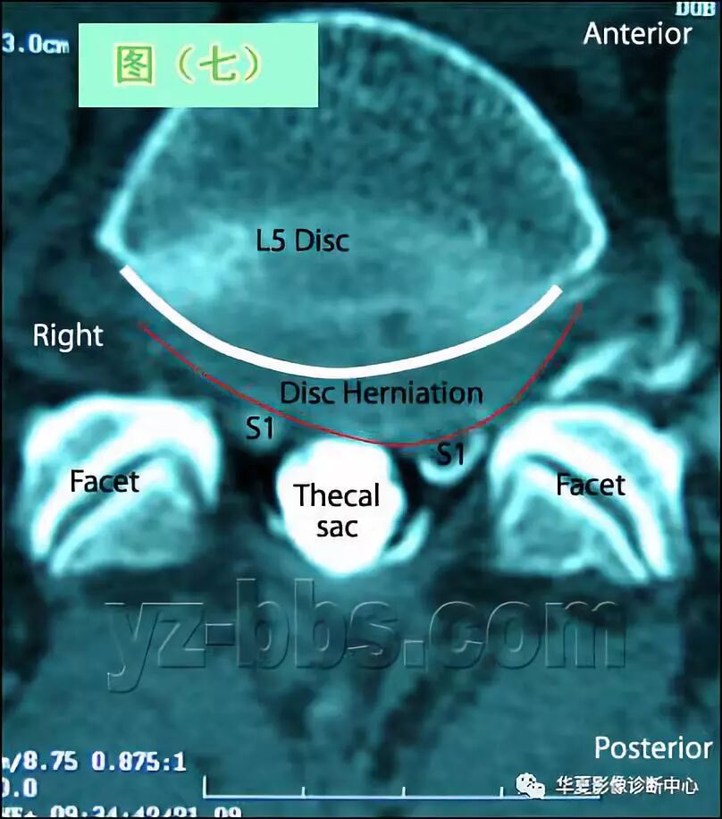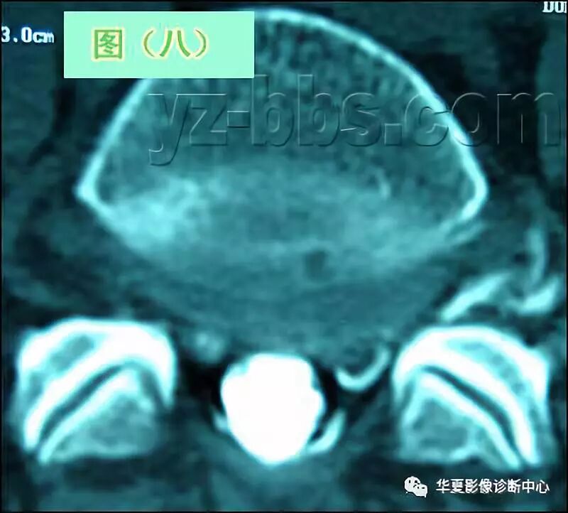图(七)的CT片是来自左侧图层的下面,将椎间盘的后部表现得相当地好