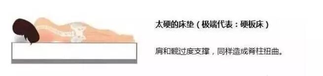 睡硬板床时,人体的重力集中在头、肩、臀、脚处,硬板床在过度支撑肩部和臀部的同时,腰部却处于无支撑的悬空状态,导致脊柱扭曲。