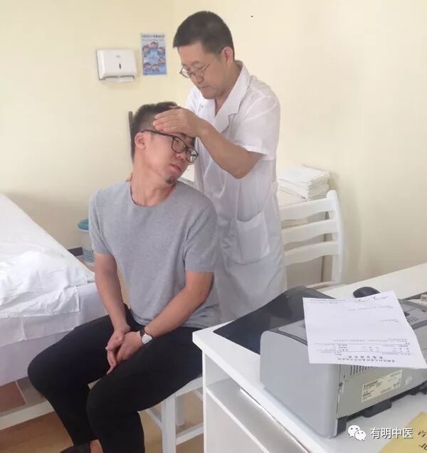 有明中医罗勇院长正在为颈椎病患者治疗颈椎病