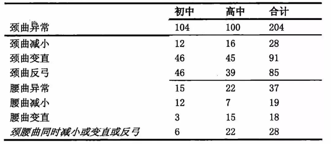 2013年昆明一所中学学生的脊椎健康调查,得到了一项令人担心的结果:在受调查的246名学生里,有颈曲异常变化的有204例,约占总人数的83%;