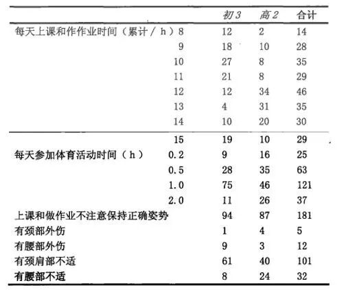 事实上,早在学生时代,不少人就“积劳成疾”。2013年一次调查,某学校的中学生每天伏案时间,最短8小时,最长15小时;参与体育运动的时间,最短0.02小时,最长也仅有2小时;平均0.94小时,连1个小时都达不到。